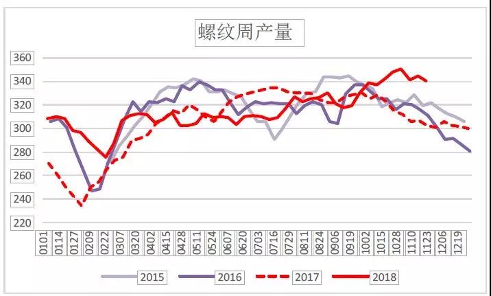 螺紋、熱軋周產量變化